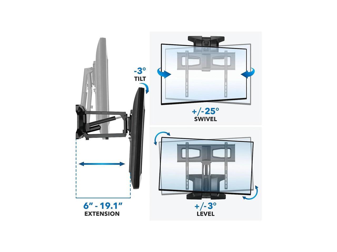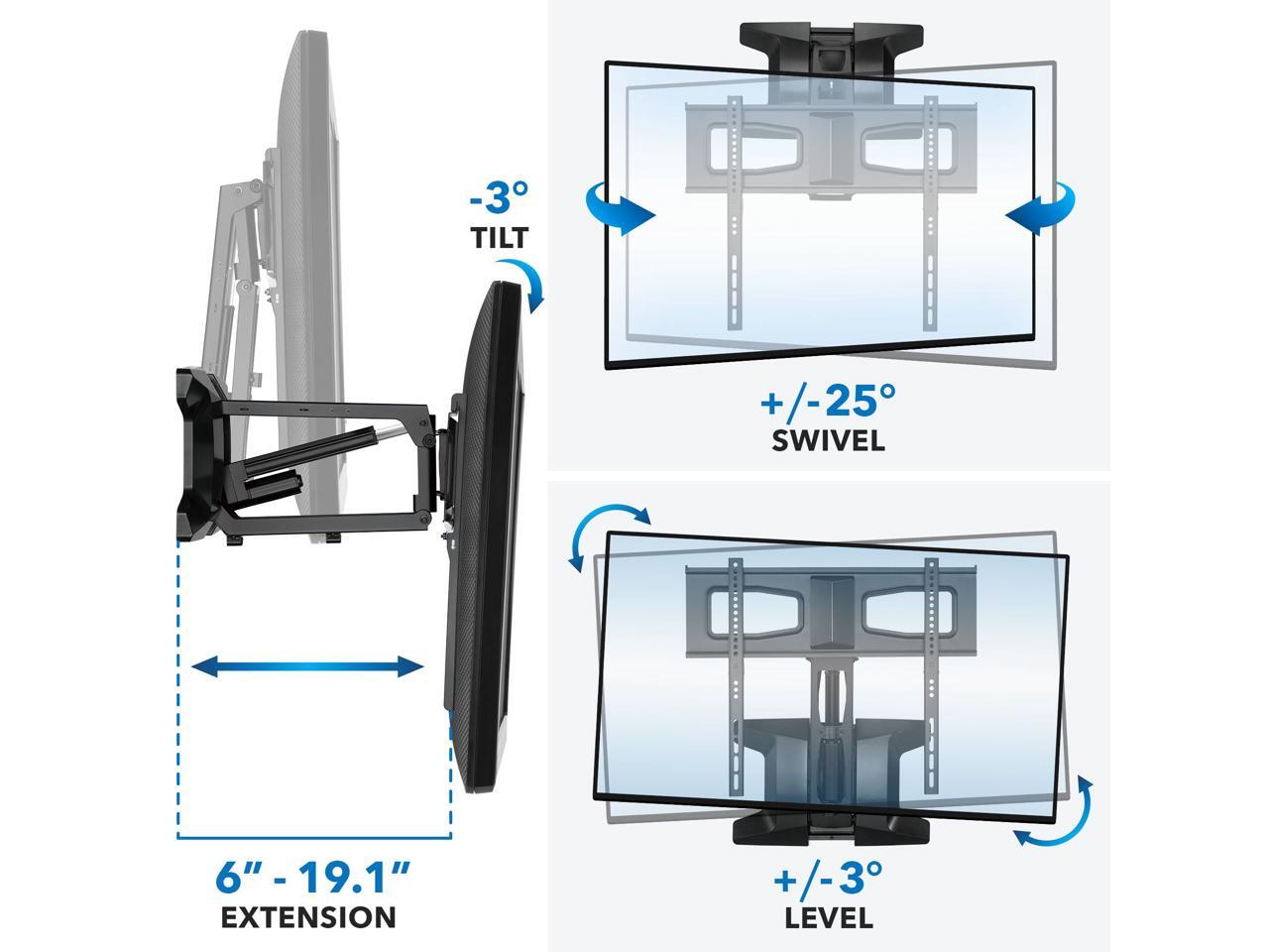 - Comes in black. Position your TV with remote control adjustment. Swivel: up to 25 degrees.