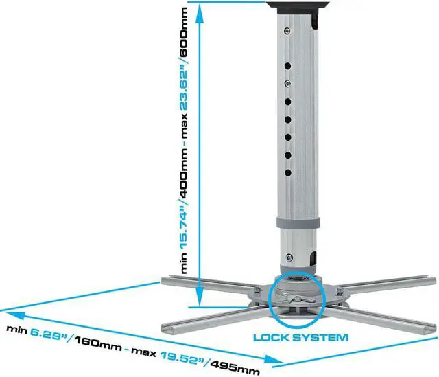 Legs adjustable from 6.3" to 19.5" diagonally for small to large projectors