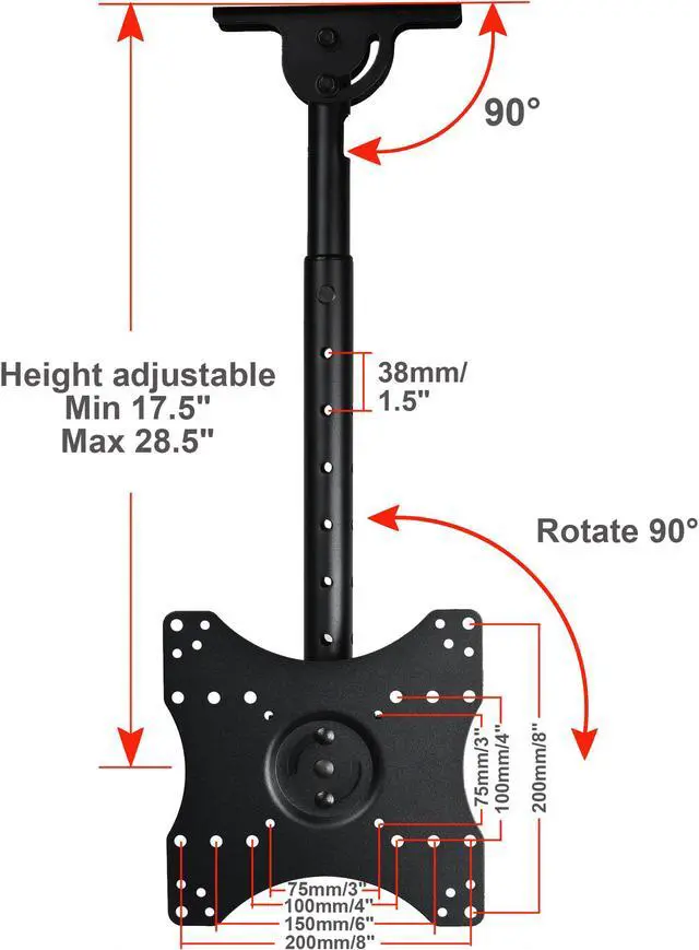 *The TV plate center to ceiling adjustable from 10" to 28" by 1.5"