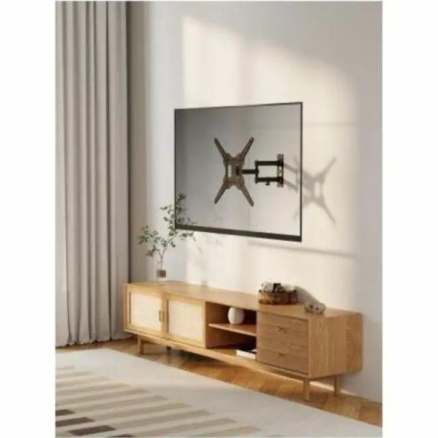 Dual articulated arm to support a 23" to 55" flat or curved screen up to 66 lbs. || Optimised views with +3 to -10° tilt and +/-90° swivelling || Extended arm saves space when the display is not in use and is perfect for corner installations || Holds the display at a distance of 60 to 382 mm from the wall || It is compatible with small screens and VESA 100 x 100, making it ideal as a stand monitor wall