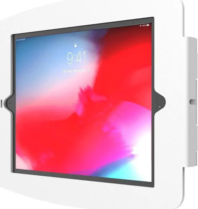 Compulocks Space iPad enclosure is available for: iPad 2, 3, 4, Air, Air 2, iPad Air 10.5, Pro 9.7, iPad 9.7 iPad Mini - Including iPad Mini 5 (2019) iPad Pro 10.5 (2017), iPad Pro 12.9 (1st, 2nd Gen)iPad 9.7 (2018), 11" iPad Pro, 12.9" iPad Pro (3rd Gen) iPad 10.2 (2019) Please ask your representative for the correct product number The Space iPad Enclosure features rounded edges and open corners for improved ventilation and allows for limited access to buttons and inputs. As with all our iPad lock and tablet lock devices, the tablet can be continuously charged while in the enclosure and have peripheral cables plugged in while mounted. Mount this enclosure flush to the wall or surface via the standard VESA pattern or pair it with one of stands for additional kiosk experiences.
