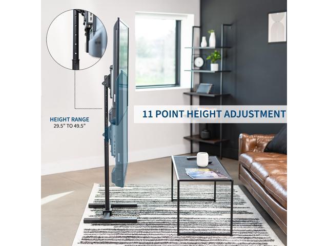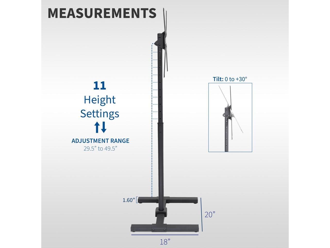 - Height Adjustment: This simple and attractive TV stand features 11 set points of telescopic height adjustment. Maximum screen height from floor to center of screen is 49.5" and the compact base is low profile for convenient placement