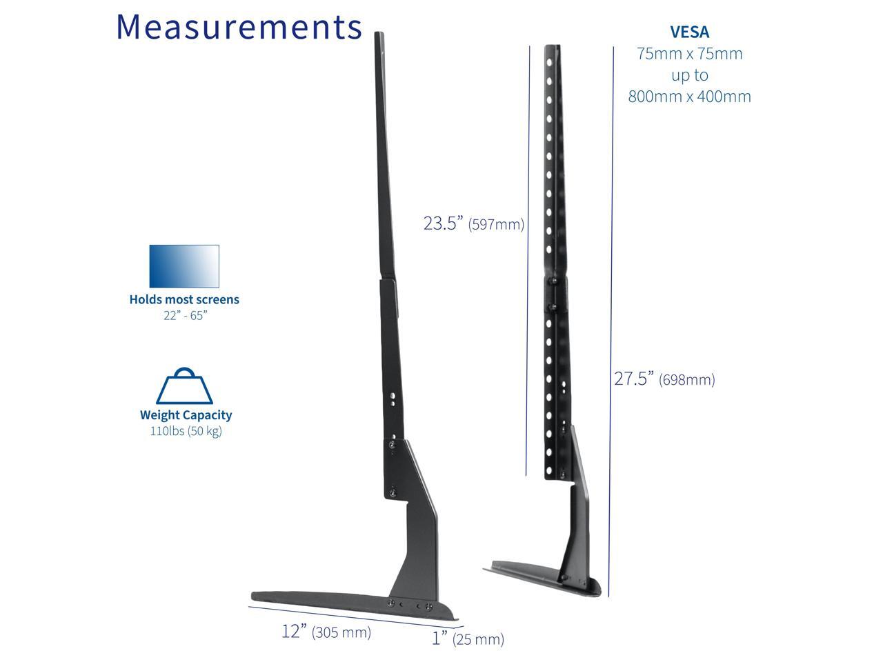 - Fits 22" to 65" TV's: Universally compatible with most 22" to 65" flat and curved screens, this is a perfect replacement base that gives extra stability and height to your TV. For larger TV's, please see our STAND-TV01T