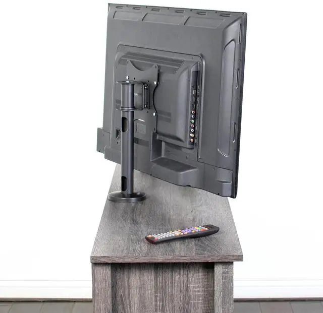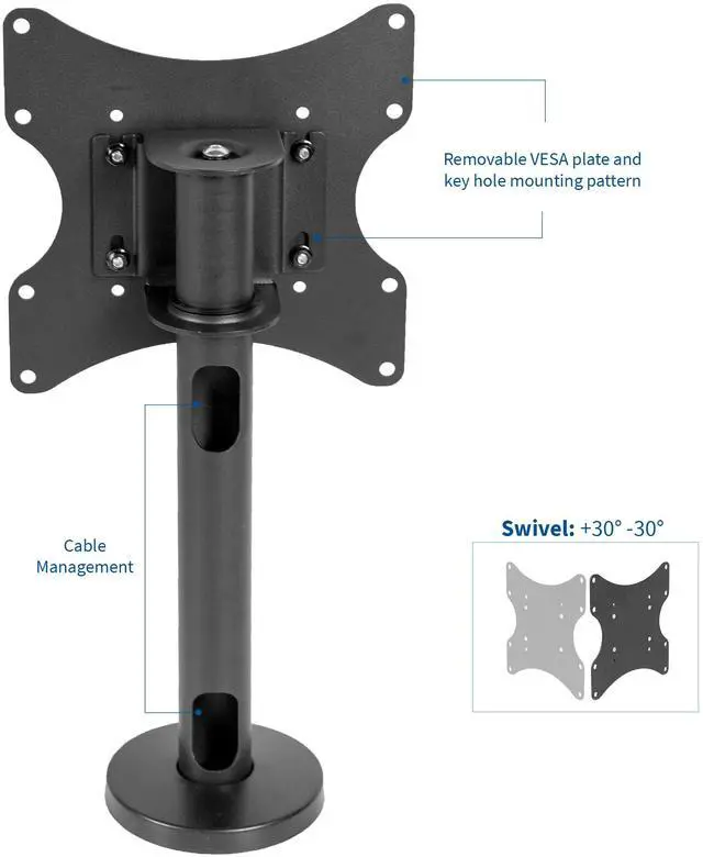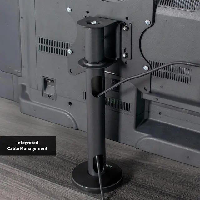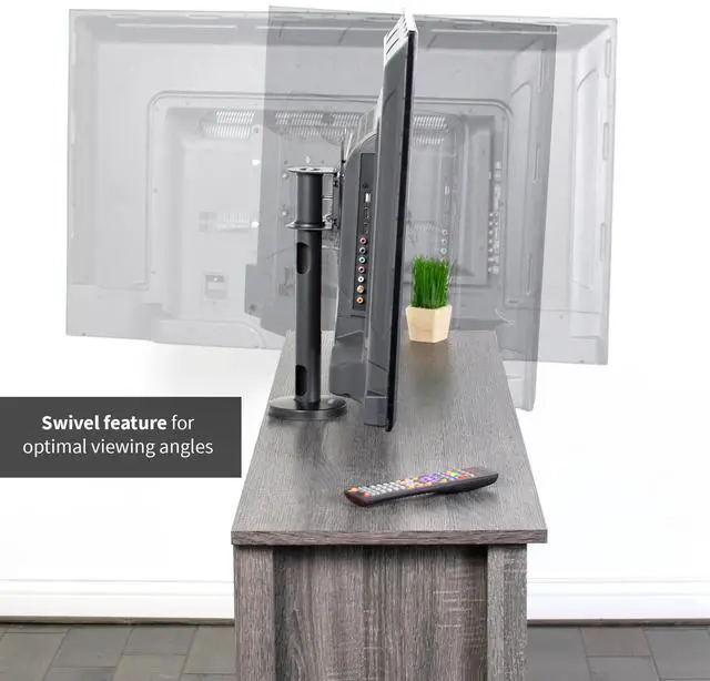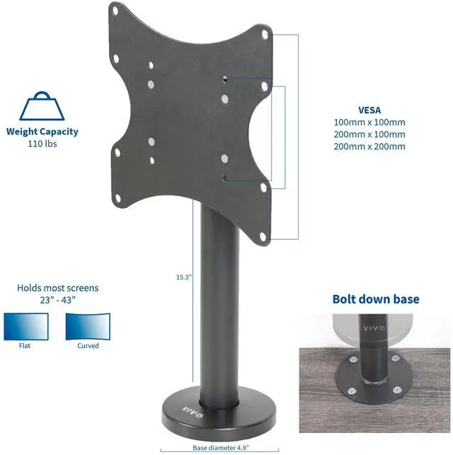 Take advantage of the perfect addition to your entertainment center with the Swivel Bolt-Down Desktop TV Mount (STAND-TV00M2) from VIVO! Made to securely hold 23" to 43" TVs with a durable sleek design, this stand can support your flat panel TV on desktops, tabletops, dressers, and more with its tamper-proof, bolt-down base design! Featuring locking swivel adjustment for ideal screen positioning and integrated cable management to keep things organized, this stand was built to perform. The keyhole pattern allows for easy installation and all the necessary hardware and instructions are provided to get your TV mounted and playing your favorite show in no time!