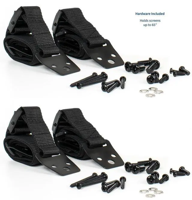 Heavy duty anti-tip cable straps from VIVO. STAND-SK02P is especially useful for flat screens within arm's reach or in areas of high traffic and is an essential tool in preventing tip-overs causing accidents and injuries. The dual cables work with any flat panel TV up to 65". The kit attaches your TV directly to wood stud walls, concrete walls, brick walls, or the entertainment centers underneath the TV, and the cables are adjustable using the tensioning clamp. All of this is done with the provided mounting kit which includes all necessary hardware and screws required for assembly. This is a 2-pack purchase of twin straps (4 individual straps included)