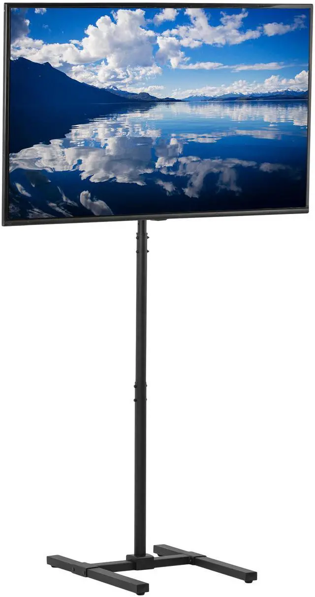 Find your preferred viewing height with the Black TV Stand for Treadmills & Ellipticals (STAND-TV17) from VIVO! This extra tall stand is designed for 13 to 50 screens, holding your display 70.5 from the floor. The telescopic pin lock height adjustment allows you to find the optimal height for your TV and features 9 pre-set adjustment points along the pole for customized placement. Find your comfortable viewing angle and reduce screen glare with this stands tilting capability. Designed to be the ideal height for taller exercise bikes, treadmills, ellipticals, and other exercise equipment, this extra tall television stand also provides the perfect setup for both home and professional use whether youre gaming on an Xbox in your dorm room, giving a work presentation at the office, or teaching in a classroom.