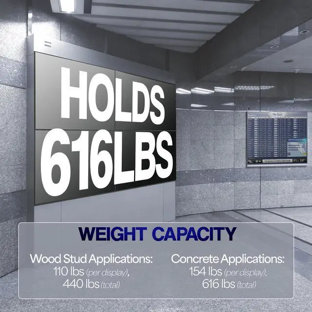 Create an impressive video wall with the Pop-Out 2x2 Video Wall Mounts (MOUNT-VW65-4) from VIVO! Designed for 37 to 65 TVs weighing up to 154 lbs each (when installed to concrete), this horizontal rail system will hold your screens safe and secure. The pop-out VESA brackets let you access ports and install hardware after the screens are mounted, and micro-adjustments provide screen-leveling to get your TVs perfectly aligned just how you want them. We provide a pre-assembly measurement guide to help you plan out your new video wall, and hardware is provided for both wood stud and concrete installation.