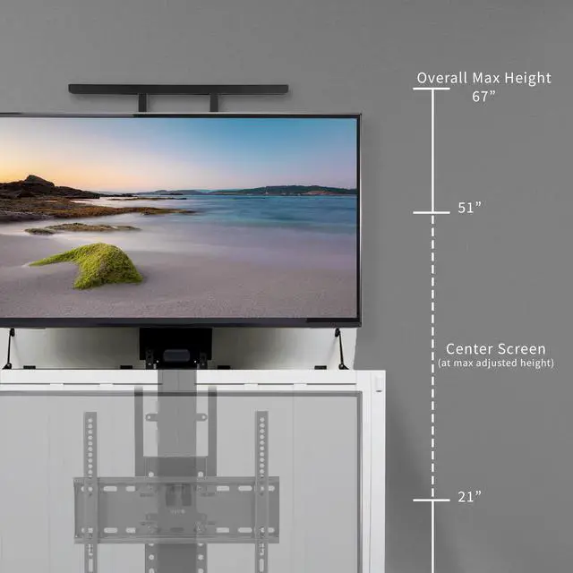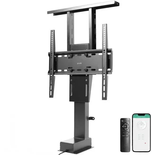 Mounting and adjusting your TV screen is smoother and simpler than ever with the Motorized TV Stand with Remote Control (MOUNT-E-UP55P) from VIVO! Instead of straining your neck, back, and eyes trying to find the perfect angle for your viewing experience, do it at the press of a button. This mount is remote-controlled with motorized height adjustment, and you can also connect the Tuya app to access convenient controls right from your mobile device! When youre not using the TV, take advantage of the compact design that makes it easy to conceal. The variable mount placement and holes within the column make it compatible with VESA layouts from 200x200mm to 400x400mm. All the instructions and hardware are provided to get your stand assembled and TV mounted in no time!