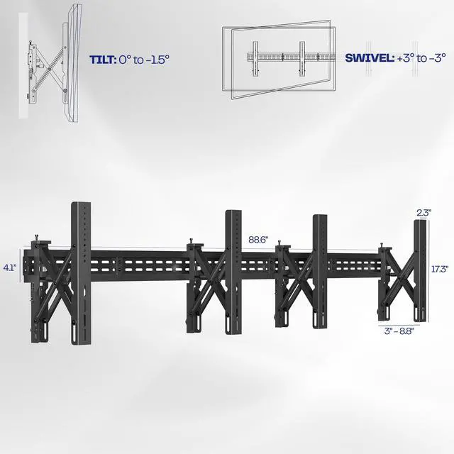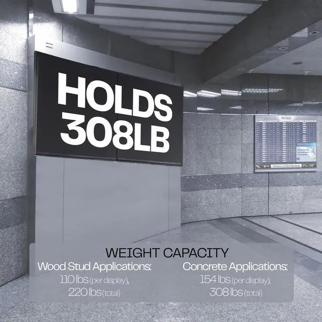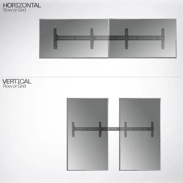 Create an impressive video wall with the Pop-Out 1x2 Video Wall Mounts (MOUNT-VW65-2) from VIVO! Designed for 37 to 65 TVs weighing up to 154 lbs each (when installed to concrete), this horizontal rail system will hold your screens safe and secure. The pop-out VESA brackets let you access ports and install hardware after the screens are mounted, and micro-adjustments provide screen-leveling to get your TVs perfectly aligned just how you want them. We provide a pre-assembly measurement guide to help you plan out your new video wall, and hardware is provided for both wood stud and concrete installation.