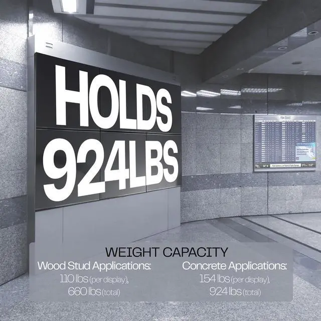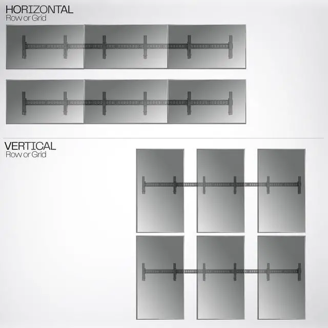 Create an impressive video wall with the Pop-Out 2x3 Video Wall Mounts (MOUNT-VW65-6) from VIVO! Designed for 37 to 65 TVs weighing up to 154 lbs each (when installed to concrete), this horizontal rail system will hold your screens safe and secure. The pop-out VESA brackets let you access ports and install hardware after the screens are mounted, and micro-adjustments provide screen-leveling to get your TVs perfectly aligned just how you want them. We provide a pre-assembly measurement guide to help you plan out your new video wall, and hardware is provided for both wood stud and concrete installation.