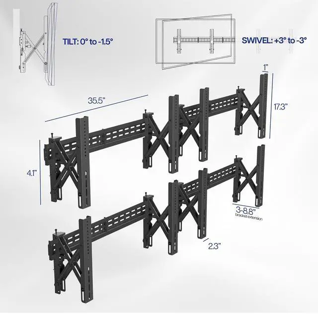 VESA Bracket Dimensions: 17.3 x 2.3 x (3 to 8.8)
