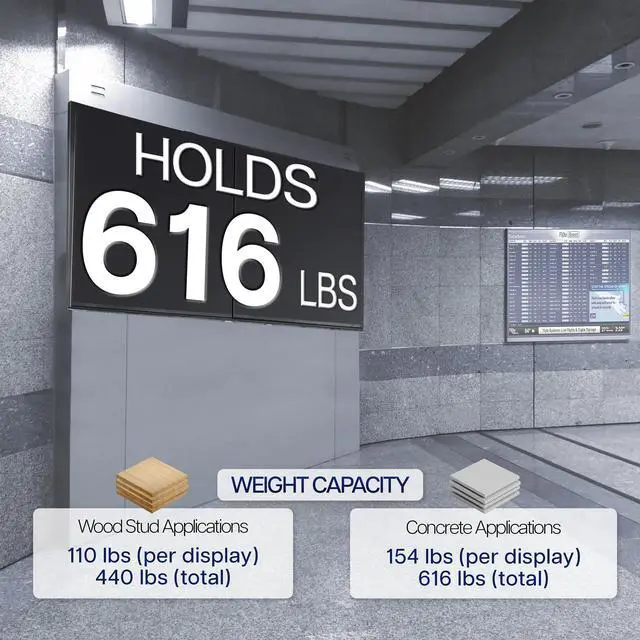 Weight Capacity for Concrete Applications: 154 lbs (per TV)