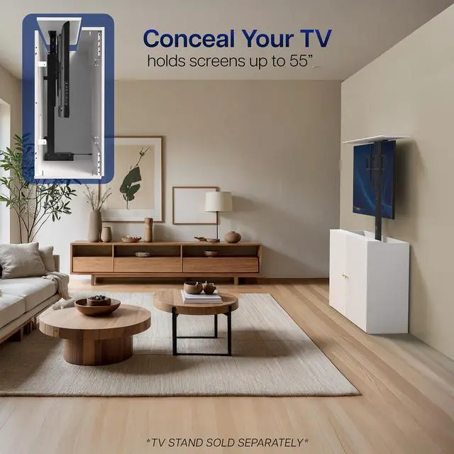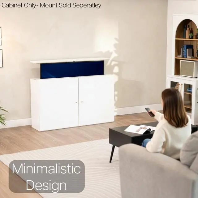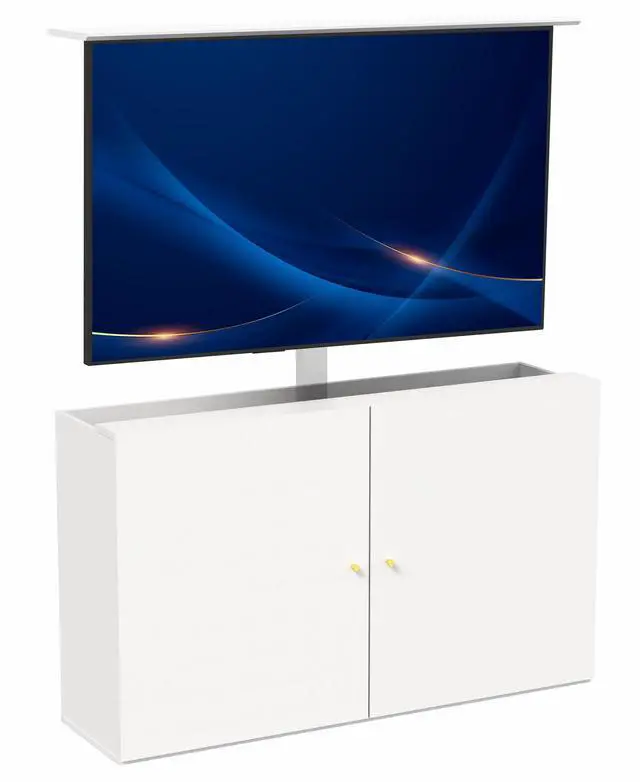 Neatly conceal your TV inside an attractive furniture piece with the White TV Lift Cabinet (CASE-EUP1W) from VIVO! Designed for vertical lift television stands (not included), this cupboard fits screens up to 55 in size and 44 lbs in weight, keeping your TV hidden and out of harms way. Great for home entertainment centers and office conference rooms alike, this minimalistic cabinet brings both cozy and professional vibes to suit the occasion. With a clean white color and minimalistic design, it complements a variety of decor schemes.