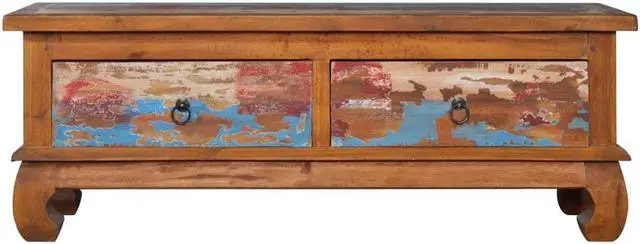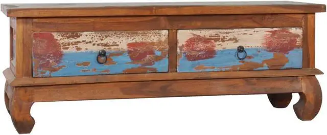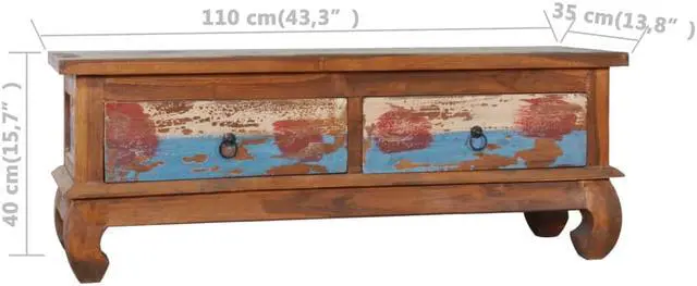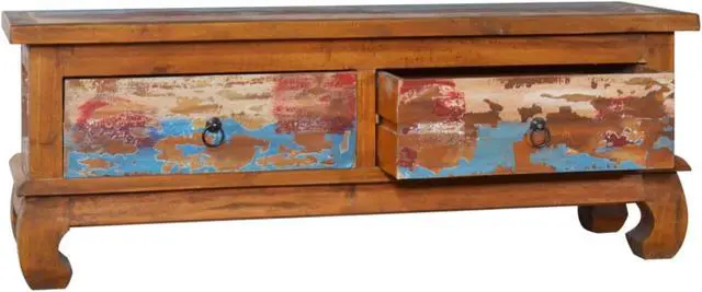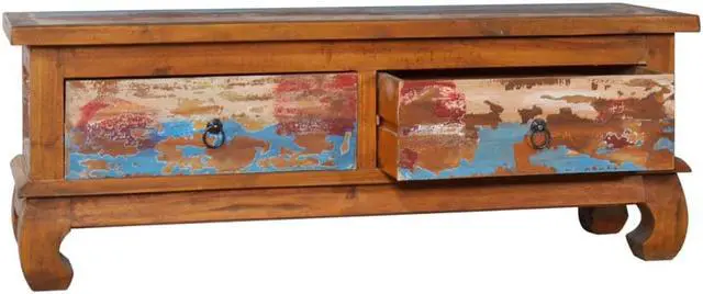 Our colonial-style wooden TV cabinet, featuring a trendy yet practical design, is meant to be a focal point of your room. This rustic TV stand table is constructed of solid teak wood, providing sturdy and durable base support. Natural oil finish ensures a smooth surface and is easy to clean and regular maintenance. The multicolor spots pattern and unique claw-legs design complete the vintage looks. Also, it features 2 smooth running drawers for keeping items like CD and magazines, etc. Teak wood is known for its exceptional strength, making it far more suitable for furniture than any other kind of wood.