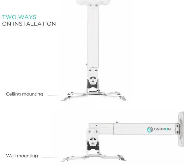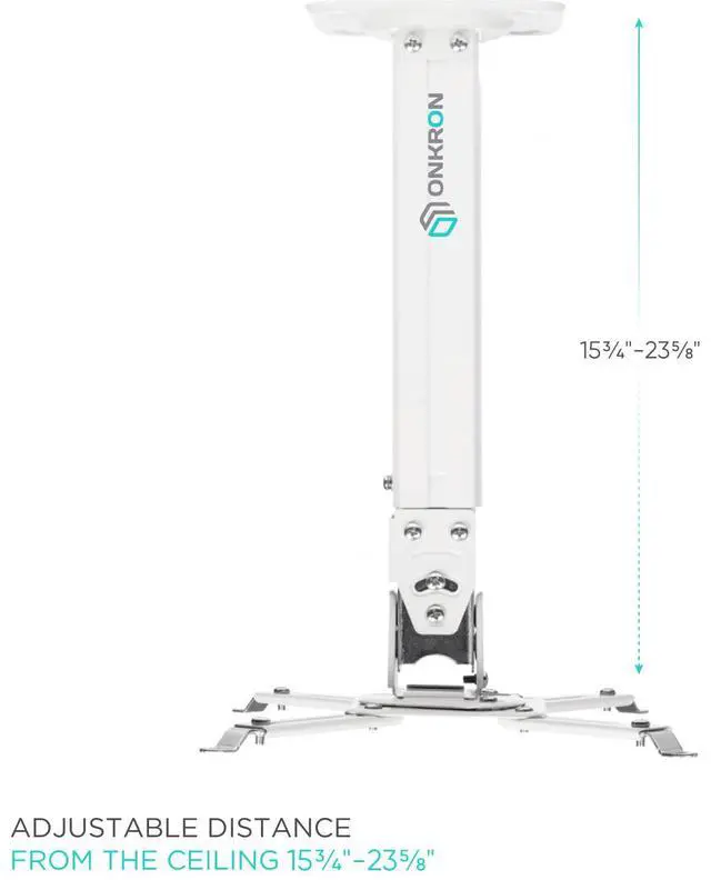 The mount holds the projector suspended 15.8'' - 23'' below the ceiling. White powder-coated finish perfectly fits the majority of home and office environments.