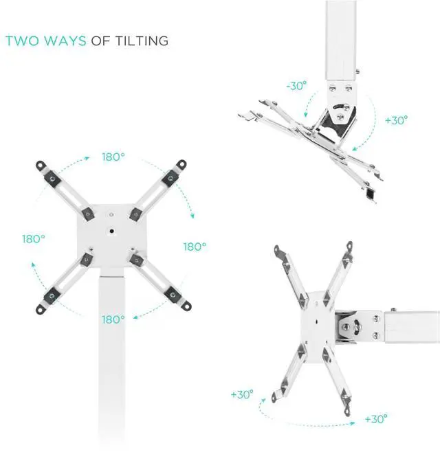 Projector mount features -30° ~ +30° tilting, and 30° swiveling; you can set desired angles and watch in comfort.