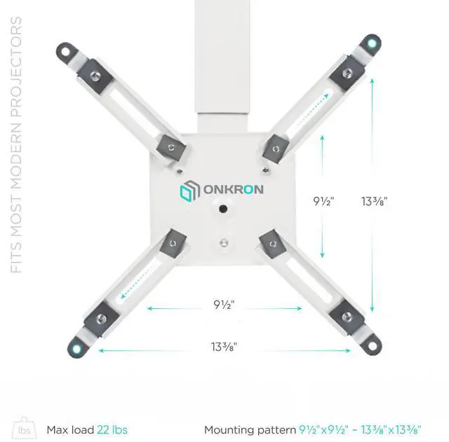 Fits majority of modern projectors; support projector models with mounting pattern 240x240 - 340x340 mm.