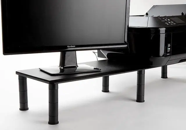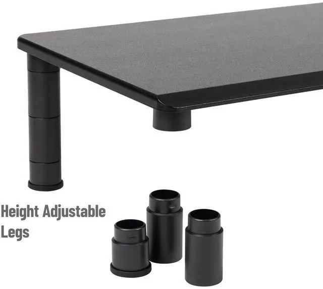 Set your preferred height according to your office chair or your most comfortable optimal viewing. All legs are adjustable. Stays in PlaceEquipped with rubber grippers for all legs in order to keep the organizer stand in place. Don? t worry about your stand sliding all over the place when in use or when adding monitors, TV? s, speakers, or any other media devices. Ergonomic Stand for Health BenefitsClinical studies show the best height for your monitor is to have your eyes level with the top edge of the computer screen.
