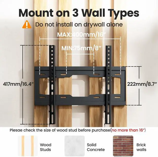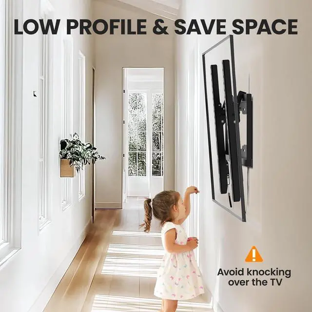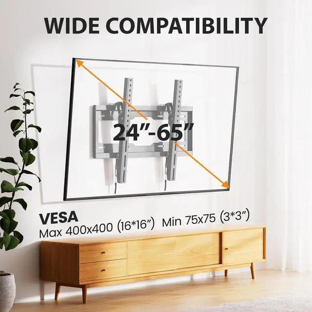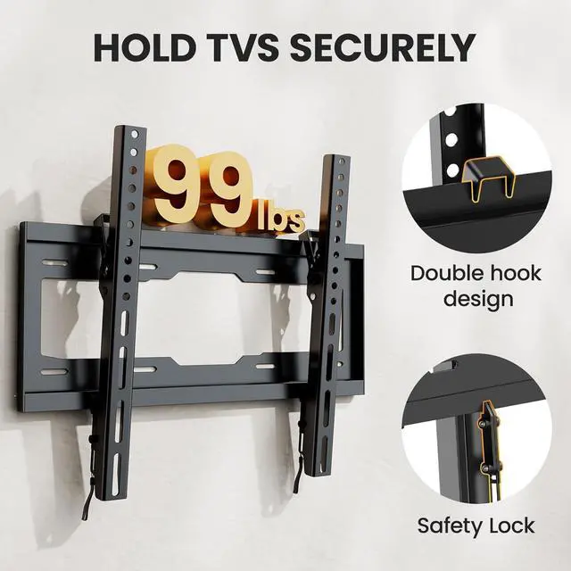 [Universal Design] The heavy duty construction TV wall mount is outstanding. It is capable of supporting up to 99 pounds. The VESA up to 400x400mm ensures that it fits most standard mounting patterns. [Low Profile Design] It allows your TV to sit close to the wall space saving and creating a sleek and clean aesthetic. Despite the slim profile the mount provides quick release making adjustments and connections hassle-free. [Easy Installation] The package includes all necessary hardware and clear instructions.