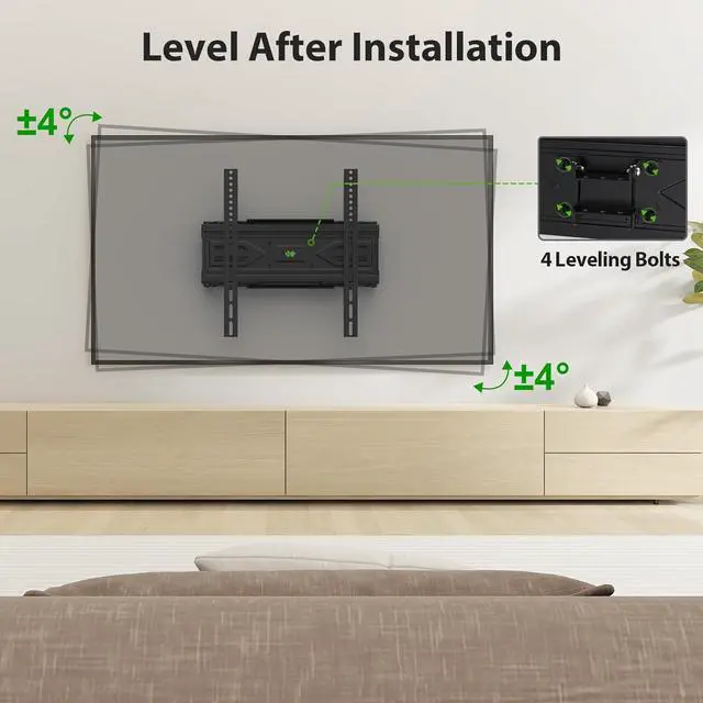 Universal TV Mount: The TV wall mount fits for most 32-70 inch TVs up to 99 lbs with VESA of 75x75mm - 400x400mm. The TV mount can be mounted to 12/16 Inch wood studs concrete or brick walls. Please verify the size weight and VESA pattern of your TV before purchaseUpgrade