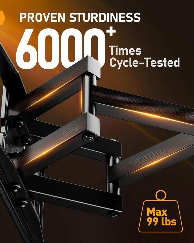 Sturdy & Durable Construction: Featuring strong cold-rolled steel material and a wide sturdy wall plate this TV mount securely holds your TV in place. It has been rigorously tested including 4x weight capacity tests and 60 000 cycle tests to ensure long-lasting performance.