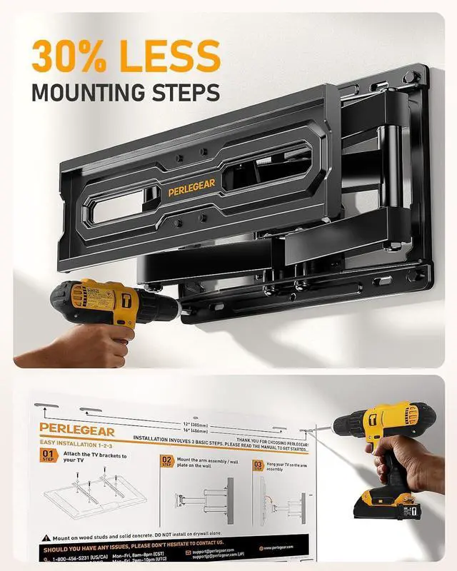 Hassle-Free Installation: Mounting our TV wall mount is a breeze thanks to the preassembled arms the included wall drilling template and clear instructions. Post-installation leveling allows you to fine-tune your TVs position by +/-4° after mounting.
