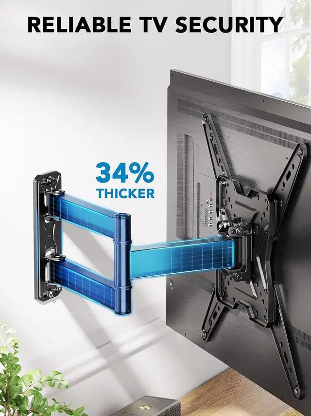 Extremely Rugged Construction: This TV mount is made of ultra-strong solid steel to support TVs up to 77 lbs. The reinforced articulating arm and wider wall plate provide exceptional stability to ensure that your TV stays securely in place.