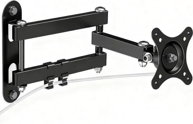 Solid Structure: We designed this monitor wall mount with triple articluating arm by SPCC cold rolled steel for double reinforcement and enhanced stability usage. Our tv mount can hold up 33lbs after 4 times load-bearing test. Human-centric details in the cable management system helps avoid wires and cable mess. You can extend the bracket outward to make it easy to clean up the dust behind the monitorSimple yet