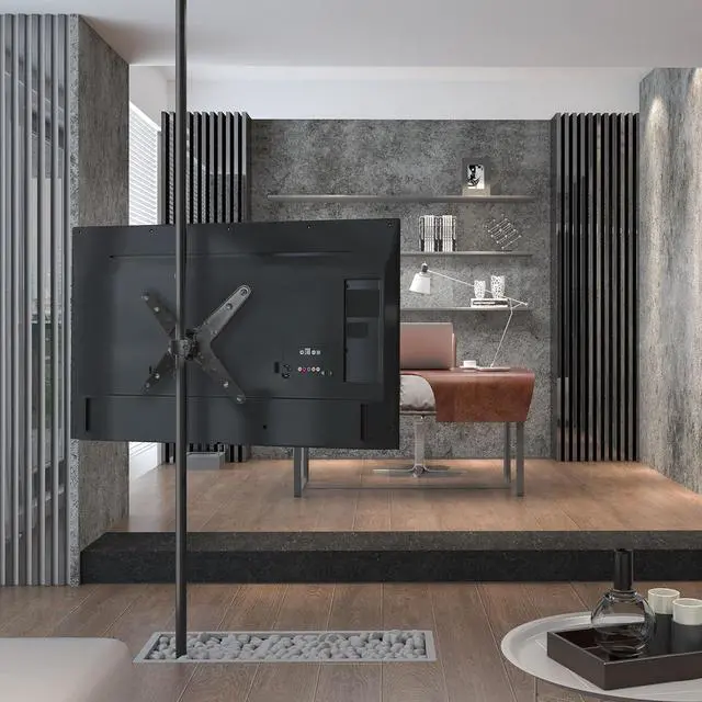 VERSATILE VESA POLE MOUNT: No walls required! This steel mounting bracket attaches to any pole from 1.1 inch to 1.96 inch in diameter allowing you to mount your TV or monitor in most spaces. Great for outdoor seating areas garages RVs boats retail stages trade shows and more! FULL MOTION TV POLE MOUNT BRACKET: Create a better viewing experience and reduce glare with +10°/-15° tilt +/-60° swivel range and 360° screen rotation around the pole. Motion features ensure perfect positioning of your TV or monitor when mounted on a pole.