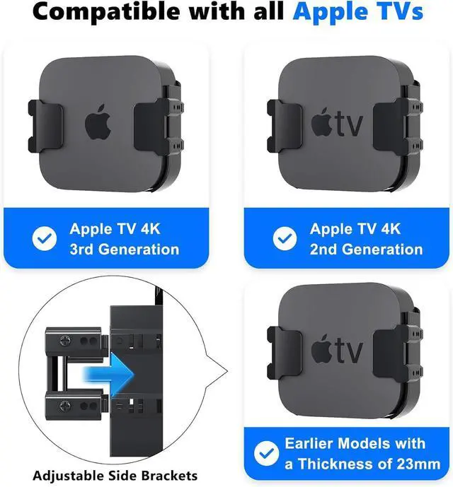 UNIVERSAL COMPATIBILITYThis TV mount compatible with all TV generations and 2023 2022 2021 2020 2019 TV models including TV 4K Wi-Fi and TV 4K Wi-Fi + Ethernet. 3 Installation Methods3 options are provided for you to install the TV mount whether you want to attach it to the back of your television hang it on the vent or put it on the wall we provide the necessary tools and hardware to support your needs. It easily stays where you put it without falling. WHAT'S IN THE BOX1 x TV mount and mounting hardware (including screwdriver adhesive hook vent hook screws and drywall anchors).