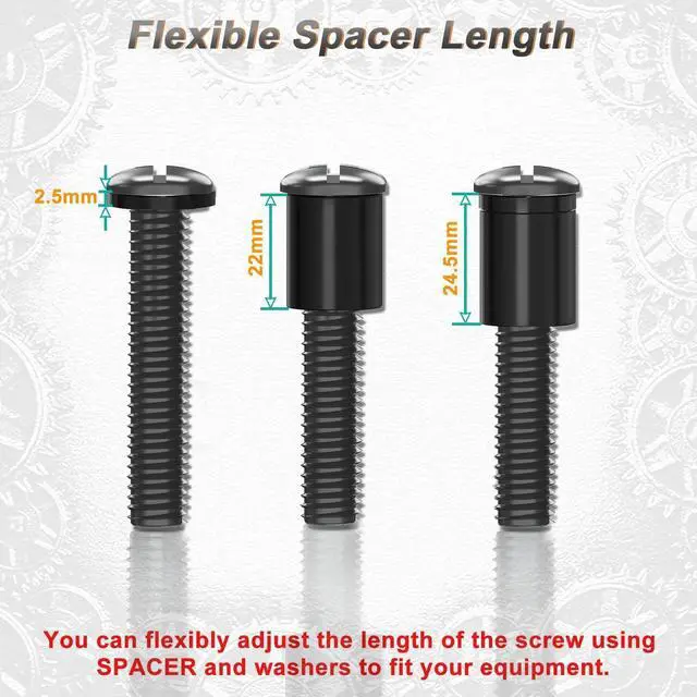 Design: This product is a whole package of screws with washers and spacers. It includes M4 M5 M6 and M8 TV screws and spacers up to 80 TV.