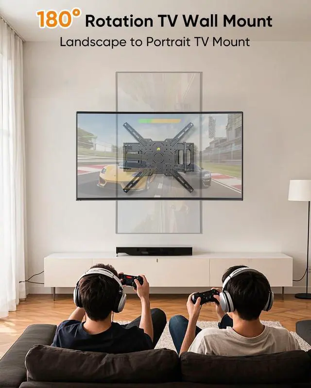 Wide Compatibility: This full motion TV mount fits most 26-65 TVs holds up to 77 lbs with VESA mounting patterns100x100 to 400x400mm. Please verify the size weight and VESA pattern of your TV before purchase. This 43 inch TV mount is designed for modern living and office spaces Thus this 50 inch TV wall mount is especially suited for diverse settings such as living rooms bedrooms offices corners and even gymsLandscape to Portrait TV Wall MountThis 55 inch TV Wall Mount Featuring a 90° rotating bracket both clockwise and counterclockwise that allows you to fully rotate the screen by hand after its installed. This wall TV mount let you display your TV vertically or horizontally. Full Motion TV Wall Mount This Swivel TV mount features +/-90° swivel to direct the screen toward your position +5°/-12° tool-free tilt to reduce glare and +/-3° leveling after installation. This Heavy Duty TV Wall mount 55 can bear 77lbs and has passed the test of 77*3=231 lbs (3 times) at the factory Its Versatile and sturdy. Corner TV Wall MountIt's a corner TV mount. Convex and concave corner both do. Retractable 2.5 inch is low profile and utral slim saving space.