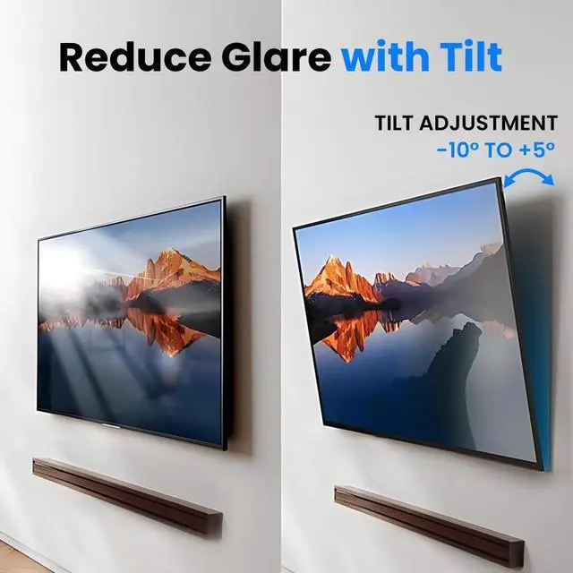 The low-profile design ensures your display sits just 2.2" from the wall, creating a sleek, unobtrusive look. Despite its slim profile, It provides a tilt adjustment range of -10° to +5°, allowing you to find the perfect viewing angle for your setup.