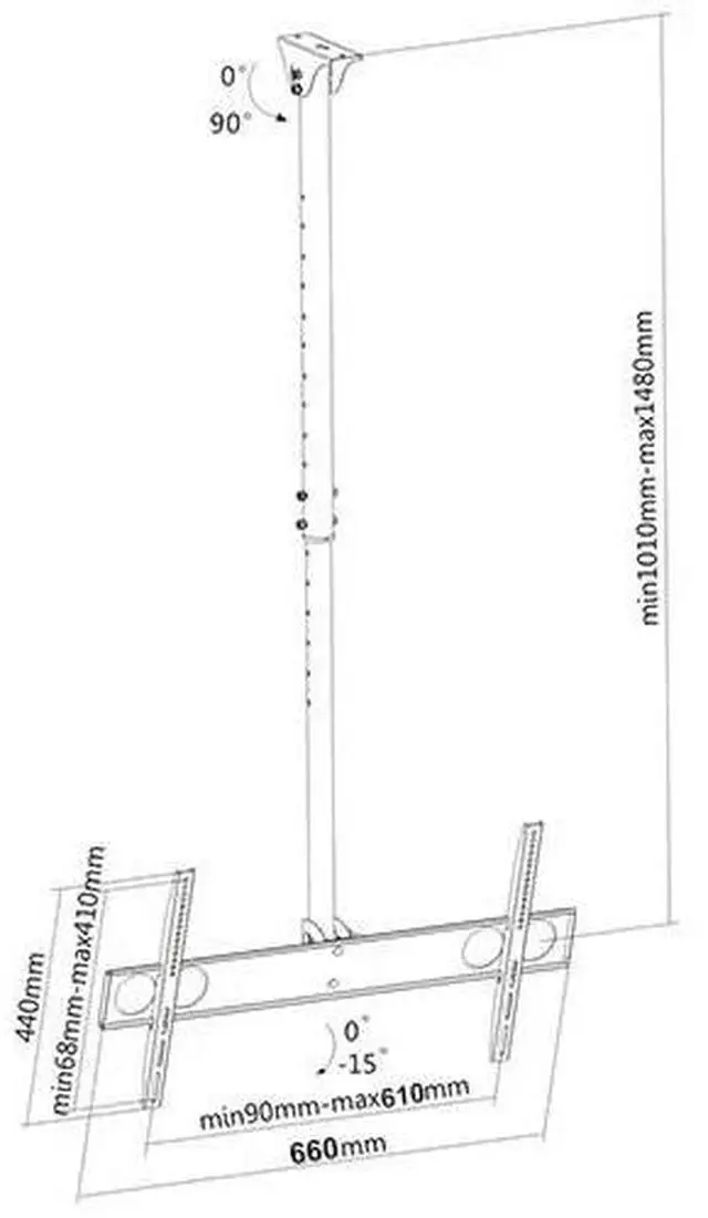 Burdened by a static tv mount or simply looking to upgrade the appearance of your home or business? This slim ceiling mount will make a minimal hardware impact on the look of your home or office and it will increase screen functionality by a huge factor. The full motion capabilities of this mount give your screen a large range of mobility for an adaptable and comfortable environment. Rotate the screen 360 degrees to face any direction in the room. The multi-directional design is also paired with a tilting motion for a 15 degree range. Tilt or pivot your screen for a wide array of potential ergonomic settings. Ergonomics can reduce neck, back, and even eye strain for a healthier and more comfortable viewing experience. The tilt function doubles as a screen optimizer. Screens were designed to be viewed head-on. With this product, at any height you can ensure your display will be projecting its image directly to you for optimal image quality. The fully capable design is coupled with a high quality reinforced steel. The aflloy can maintain and support up to 110 lbs and screens as large as seventy-five inches. The VESA bracket is nearly universal covering 75x75, 100x0100, 200x200, 100x200, 200x400 All the way up to 800x400 configurations. Simply slide the VESA arms along the plate to adjust. The universal compatibility ensures that this enduring design will last throughout multiple screen upgrades or replacements so you will not ever have to buy another mount. All necessary hardware and instructions are included. Features and Specifications: Screen Sizes 32 to 75 (inches) VESA 75x75 to 800x400 (mm) Max Load Capacity 110 lbs Rotate 360 degrees Tilt 20 degree down Height adjustability 22.4 to 31.4 inches Locking bar Cable Management Ready Color BlackDescription