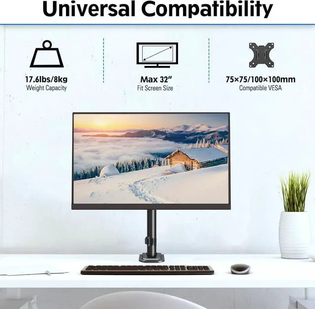 Universal Monitor Stands - The single monitor stand fits for most flat or curved computer screens up to 32", holds up to 17.6 lbs, compatible with VESA pattern 75x75mm and 100x100mm.