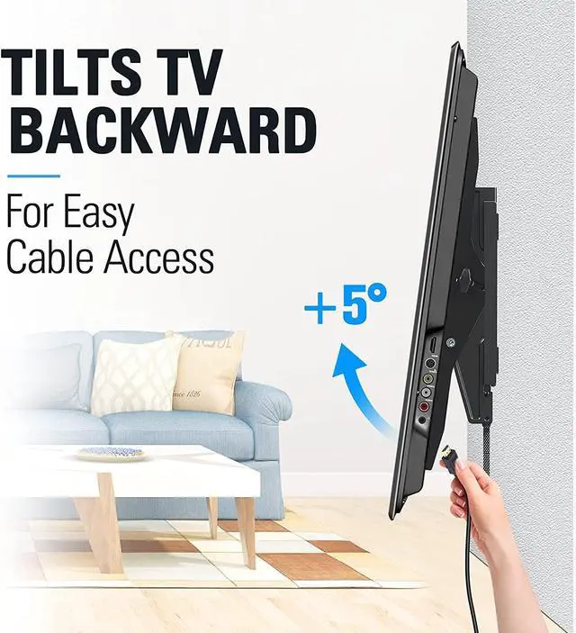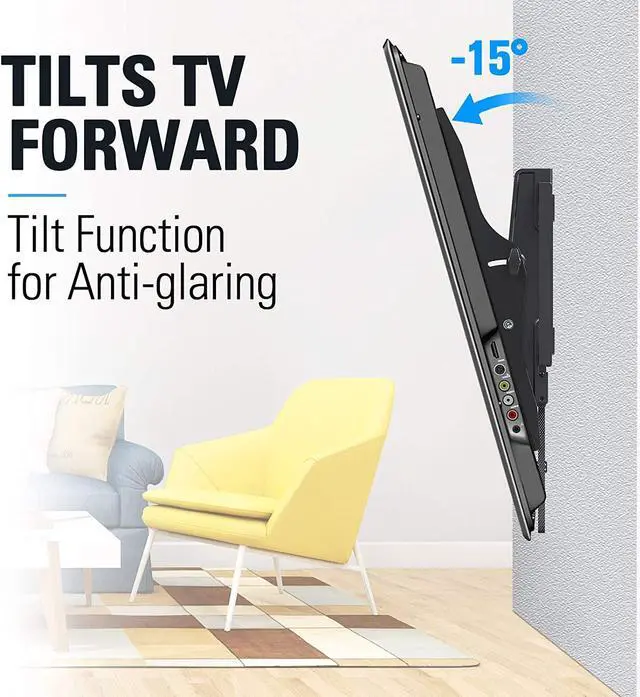 Large Tilting Angle with Tool Free Handle: Tilting TV Wall mount can tilt your TV forward up to 15° for anti-glaring, and backward up to 5° for easy cable access.
