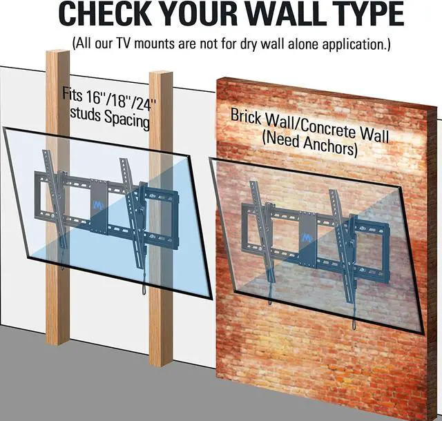 Easy to Install: Tilting TV wall mount with decent instruction coming with various necessary hardware in pre-labeled bags and torpedo level makes installation as easy and convenient as possible. Concrete wall anchors will be sent per request (Anchor