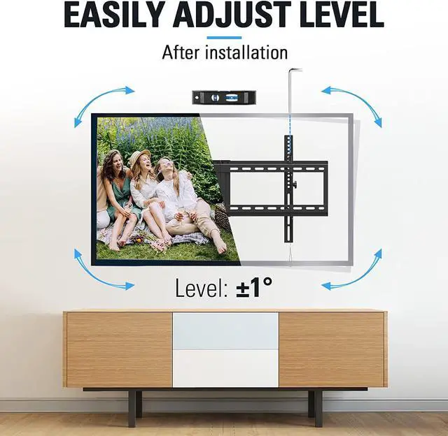 Leveling Adjustment and Space Saving: Tilting TV Wall mount can level ±1° post-installation adjustment, which allows TV perfect leveling. 2.5" slim profile allow you to mount your TV almost flush against the wall to save space and make the house look neat.