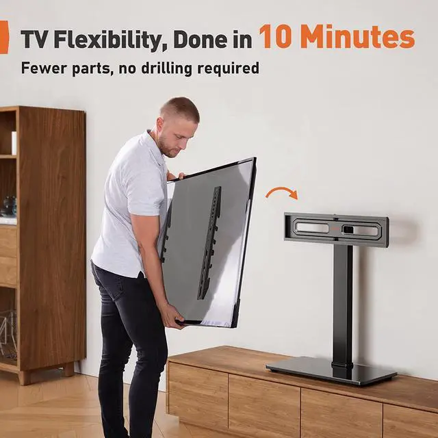 SWIVELS 60° - Maximize Your Viewing ExperienceThis universal swivel tv stand allows you to swivel your screen 30° left or right to direct the screen anywhere in the room. The tv stand mount can tilt up 8°, the perfect solution for large TVs that may slightly lean forward, making it possible for you to get an optimal viewing without being restricted by the location.