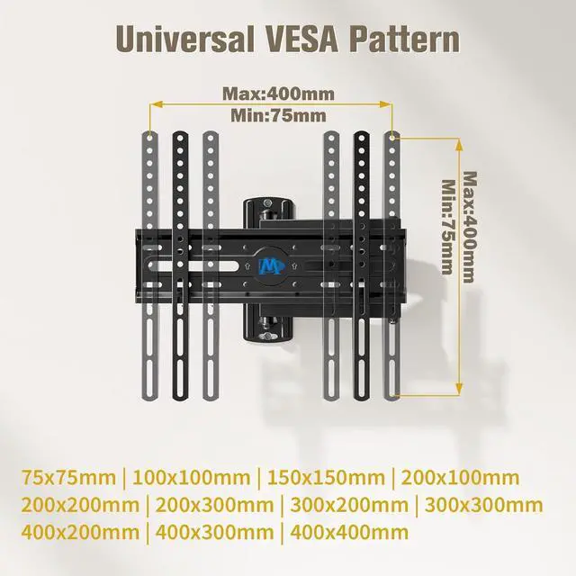 [Perfect centered design] TV wall bracket fits for most of 26-55 inch OLED/LED/Plasma TVs up to 60 LBS, with max VESA of 400 x 400mm/mounting holes spacing. Please refer to detailed information on the product description to see if this TV wall mounts fits your