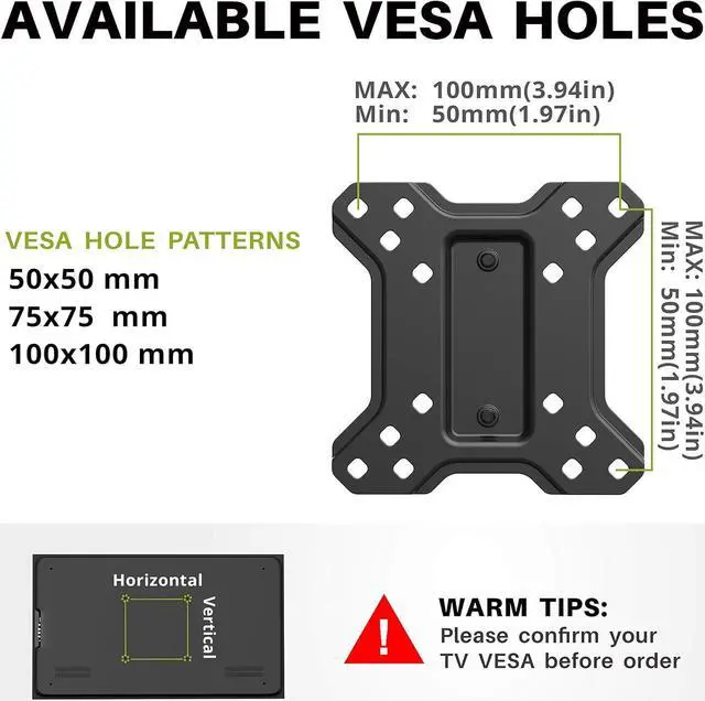 PRODUCT INCLUDES: Come with bubble level, 3 pieces pack of cable ties and all standard mounting hardware (TV