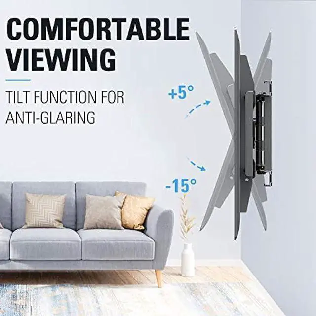 Heavy Duty Design - Strong materials while maintain smooth moves make the whole TV bracket unit safe and durable. Upgrade viewing experience with 5°/-15° tilt, 45° swivel and 4° level adjustment.