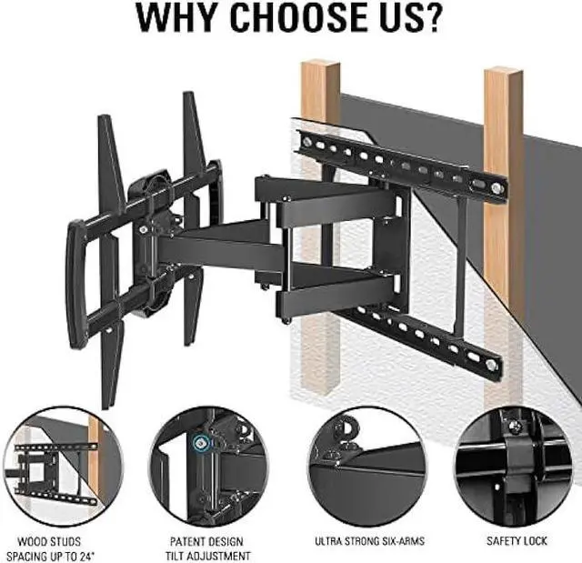 Universal Compatibility - Full motion TV wall mount for most 42-84 inch OLED/LED/Plasma/Curved TVs up to 100LBS, fits Max VESA 600X400mm (24x16), wall mounting wood studs spacing is 16, 18, and 24.