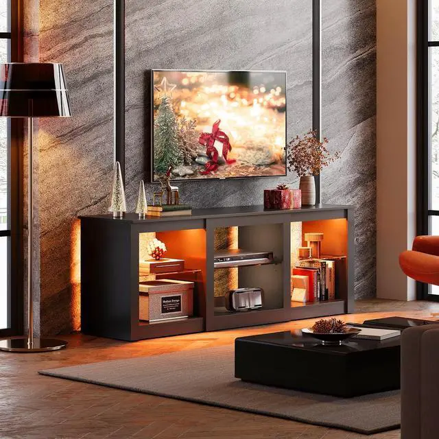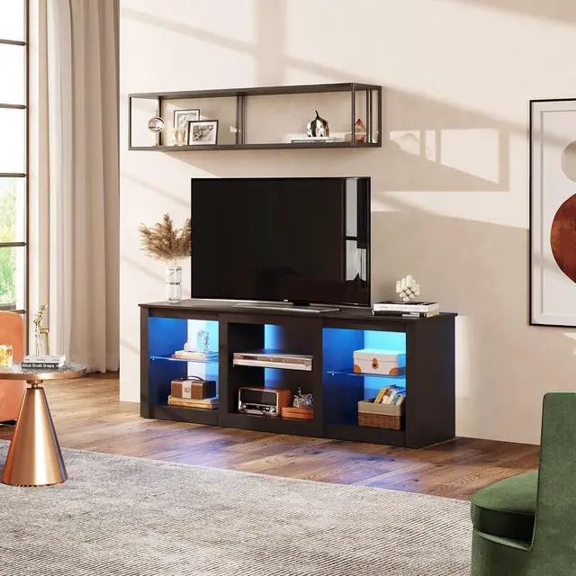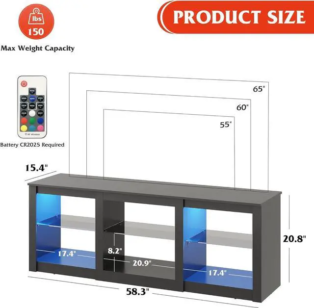 Modern TV StandThis 58.3 " W x 15.4 " D x 20.8 " H TV console has a simple look, unique LED lighting makes the whole more modern, suitable for TV up to 65", as an essential part of the living room, bringing you unlimited fun.