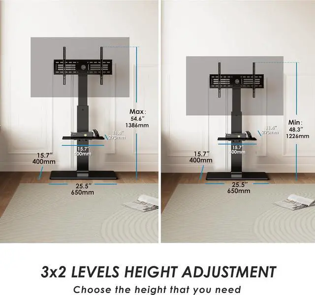STABLE & SUPER CUSTOMER SERVICE - High quality steel construction ensures safety and sturdiness of this TV floor stand, safety locks protect your television from sliding and falling off. Our TV stand includes an incredible lifetime warranty and friendly customer service. If you have any problem please feel free to contact us