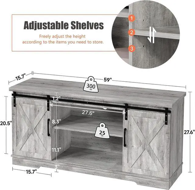 * EASY to ASSEMBLY: This gray TV media console table has been checked and is well-packed before shipping. You don' t need to worry about assembly, the barn doors tv stand comes with detailed installation instructions, parts and accessories are labeled with numbers, and precise holes make installation accurate and fast. 1-2 people can assemble in about 1 hour. If you have any questions before or after your purchase, you can always email us, and we always reply within 24 hours.