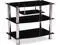 Black tempered safety glass shelves Attractive chrome cylinders support the shelves Accommodates a 32 inch TV Ample space for all media components Open shelves for proper air circulation