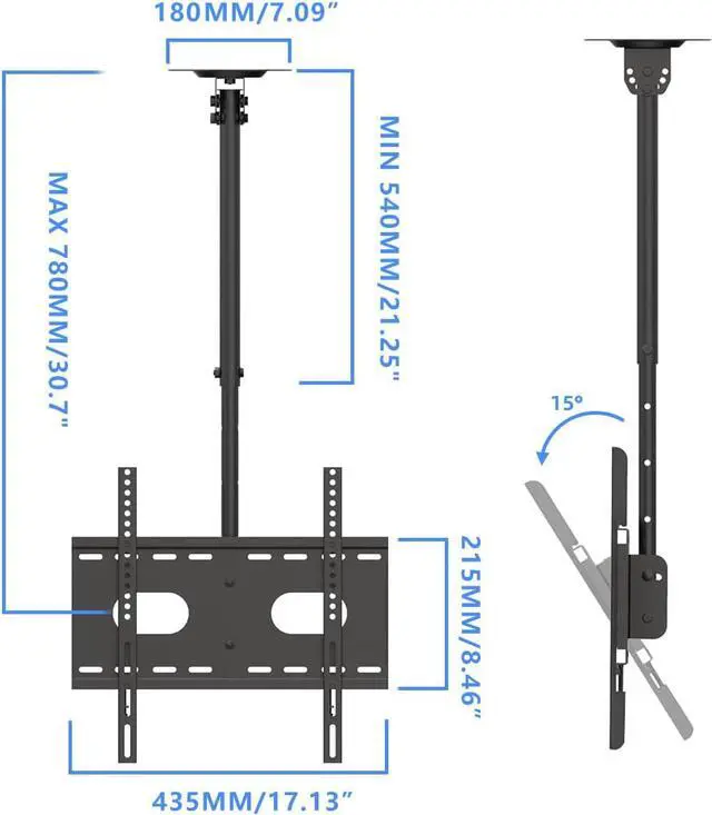 • Compatibility - compatible with VESA 100x100mm-400x400mm, fits both flat ceiling and sloped ceiling