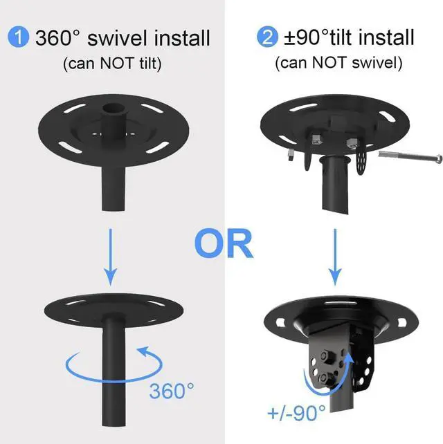 Compatibility - compatible with VESA 100x100mm-400x400mm, fits both flat ceiling and sloped ceiling