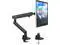 FEATURES: Mechanical spring monitor arm is heavy duty, counterbalanced and makes for effortless adjustments. Quick-detach VESA plate comes off with a press of a button and snaps back on in a second. Comes with integrated, hide-away cable management. Interchangeable top-mounting (no need to crawl under your desk) C-clamp and grommet bases included for desktops up to 2" inches thick. Aircraft grade aluminum alloy construction will stand the test of time.